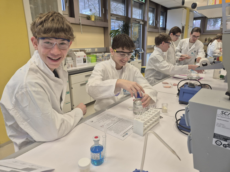 Im Rahmen des PCB – Unterrichts besuchten die Schüler:innen der 4.A das OpenLab der Johannes Kepler Universität. Nachdem sie sich zuvor intensiv mit Ernährung auseinandergesetzt hatten, konnten sie ihr Wissen dort in einem professionell ausgestatteten Labor anwenden.